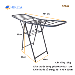 Giàn phơi NIKITA GP – 064 không chỉ phù hợp để phơi quần áo mà còn có thể sử dụng cho các vật dụng nặng hơn như chăn, màn, ga, gối.