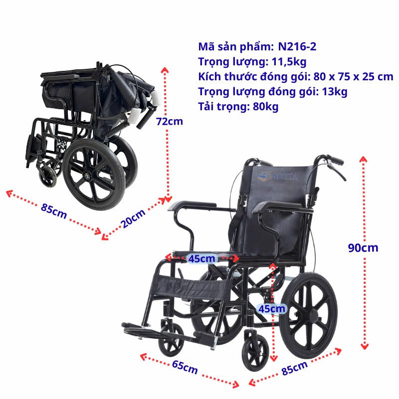 Xe Lăn Gấp Gọn Nhẹ Trợ Lực Nikita N216 – 2